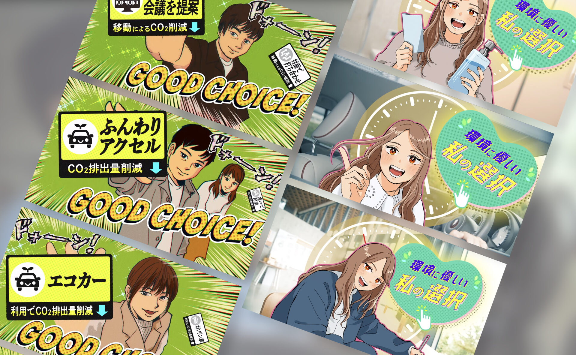 動画の出演キャストには、若年層に自分事として身近に感じてもらえるように、現役大学生の環境アンバサダーを起用しました。ただ、映像は実写に加え漫画風のアニメーションを組合わせて制作し、若年層に親和性の高い映像表現とするとともに縦型のリール動画も合わせて制作・配信しました。