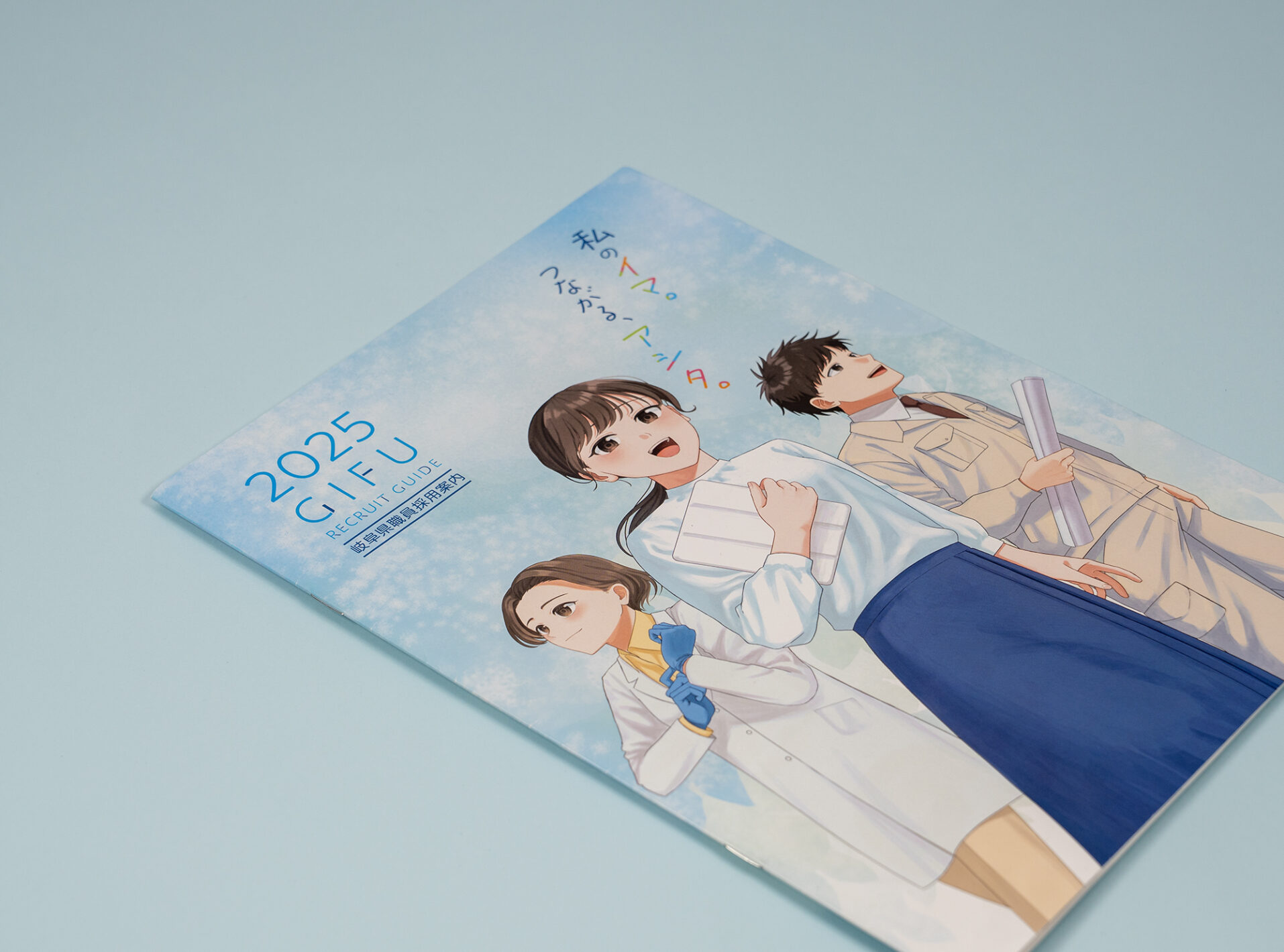 次世代の県政を担う優秀な人材を確保するため、就職を考えている若者に対して、岐 阜県職員の仕事の魅力や業務内容等を紹介した職員採用案内パンフレットを制作する。