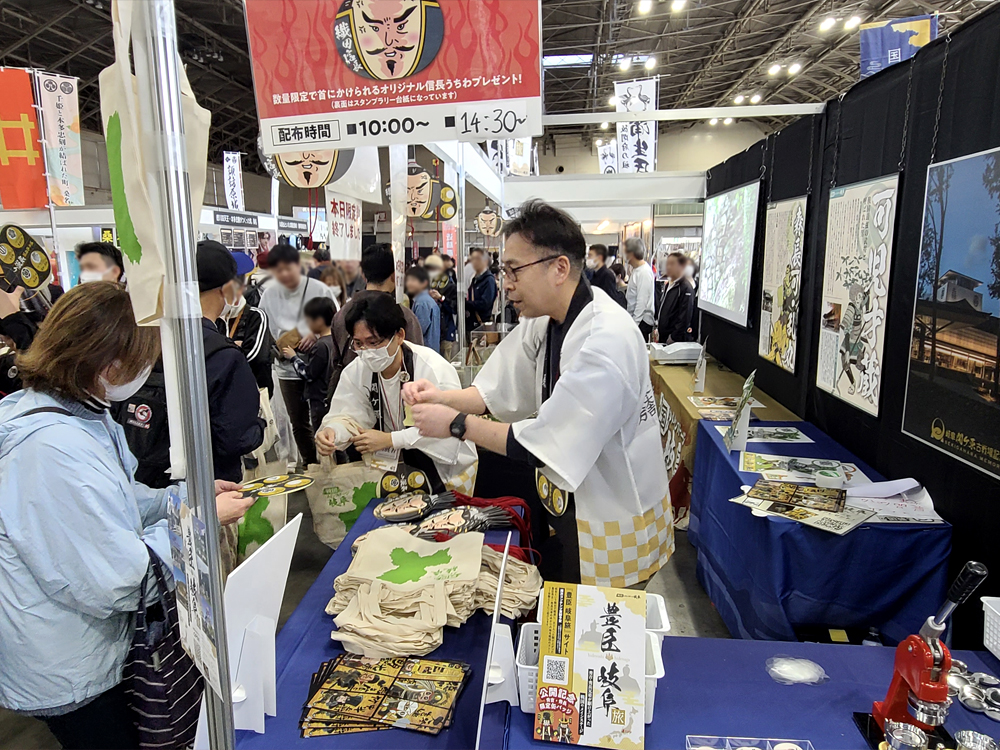 ノベルティには、数量限定の「戦国のメインステージ トートバッグ」などを用意。会場で配布されるパンフレット類をまとめて収納できる実用性と、持ち歩くことで岐阜県のPRにもつながるアイテムとすることで、満足度向上を図りました。