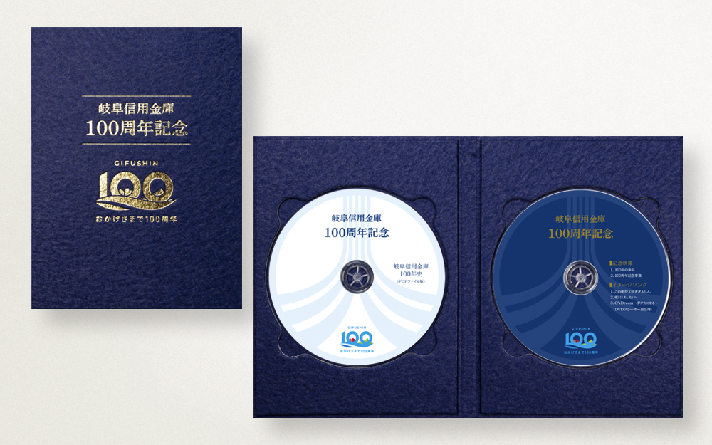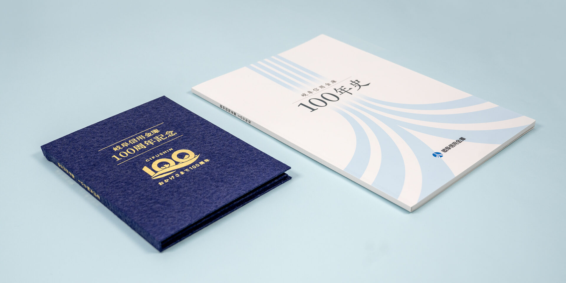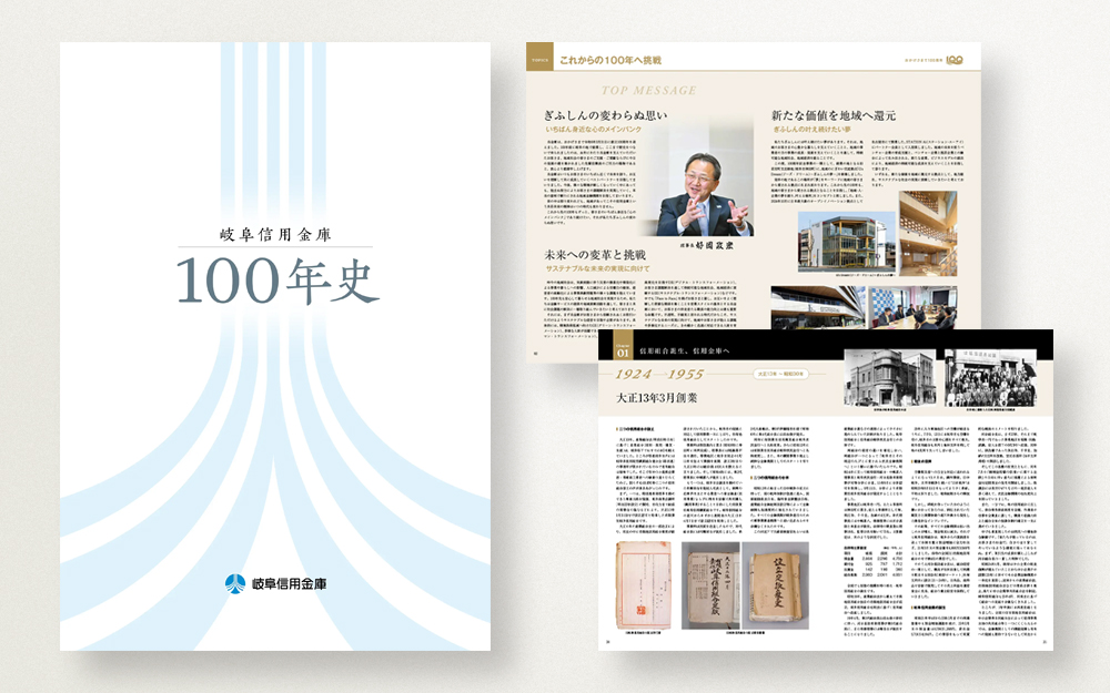 創立100周年を迎えた岐阜信用金庫の歴史と理念を、市民・取引先・職員に向けて広く伝えるため、以下の記念制作物を制作すること。