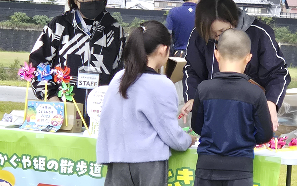 当日は終日雨天というあいにくの天候となりましたが、本企画には多くの親子が参加し、用意した200本の風車のうち 100本を参加賞として配布する結果となりました。「雨でも楽しめた」「子どもと一緒の時間が作れてよかった」といった声も寄せられ、ARを活用した体験型企画として、木曽川の自然や歴史への興味喚起に貢献しました。